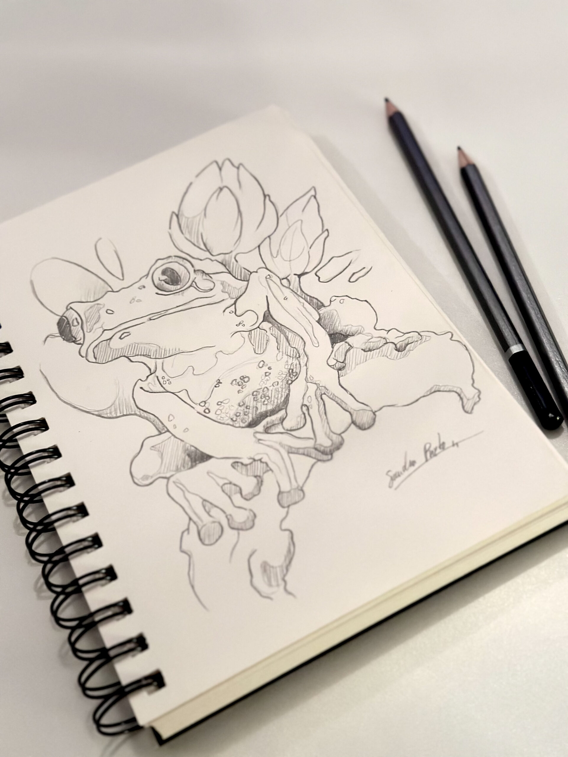 This hand-drawn sketch is created using charcoal pencils, focusing on texture, line weight, and organic form. The il...